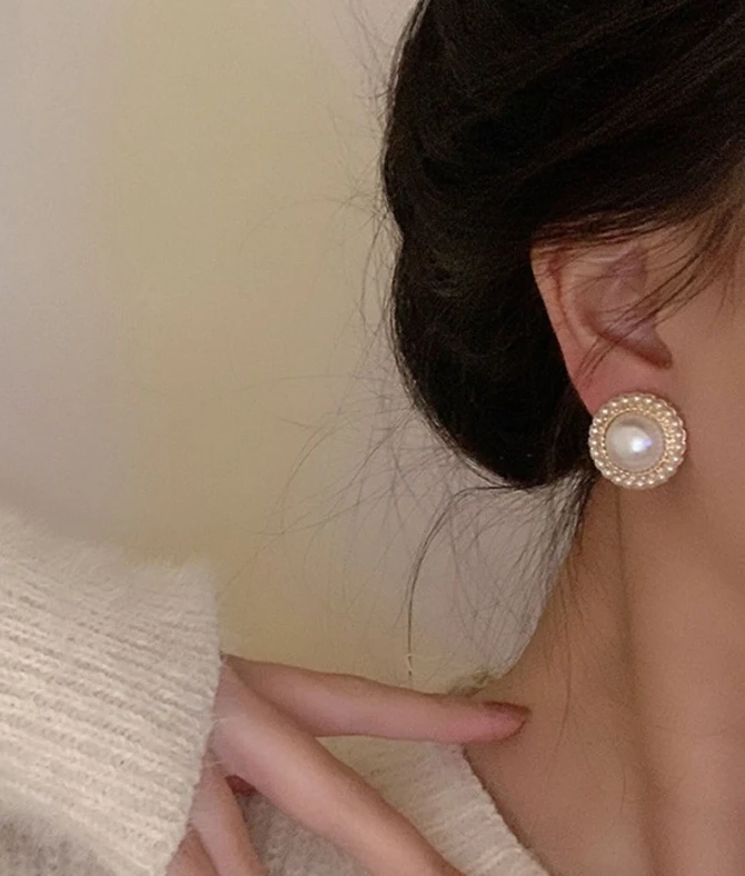 زوج من الأقراط النسائية الأنيقة مصنوعة من الزجاج اللؤلؤي الباروكي