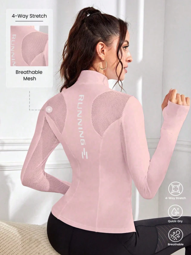 جاكيت رياضي منقوش بالحروف ببطانة شبكية