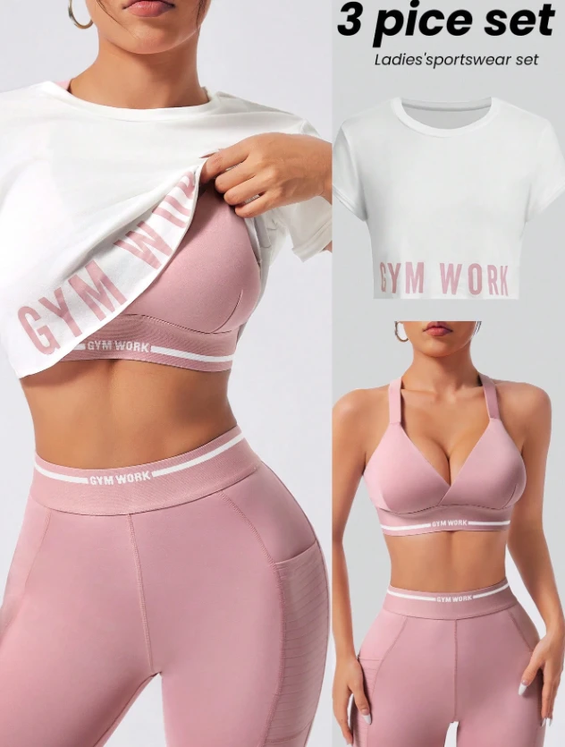 مجموعة رياضية نسائية 3 قطع – توب كامي، توب كم قصير، تايتس خصر عالي