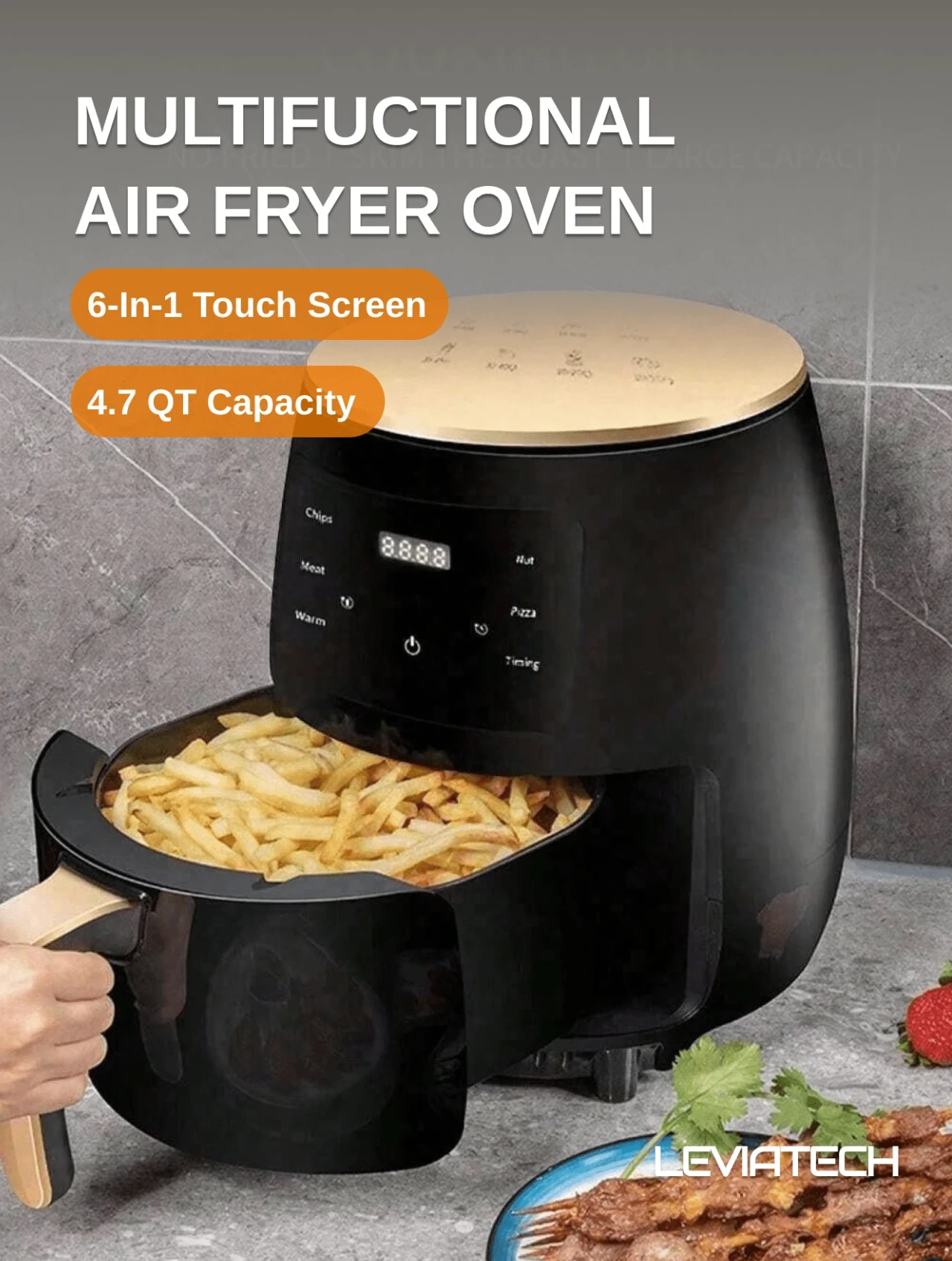 RAF 4.7 لتر سعة كبيرة، طباخ هواء ذكي كامل التلقائية، مع شاشة لمس LED متعددة الوظائف، مناسب للقلي والخبز وتحميص الدجاج والطهي بالميكروويف