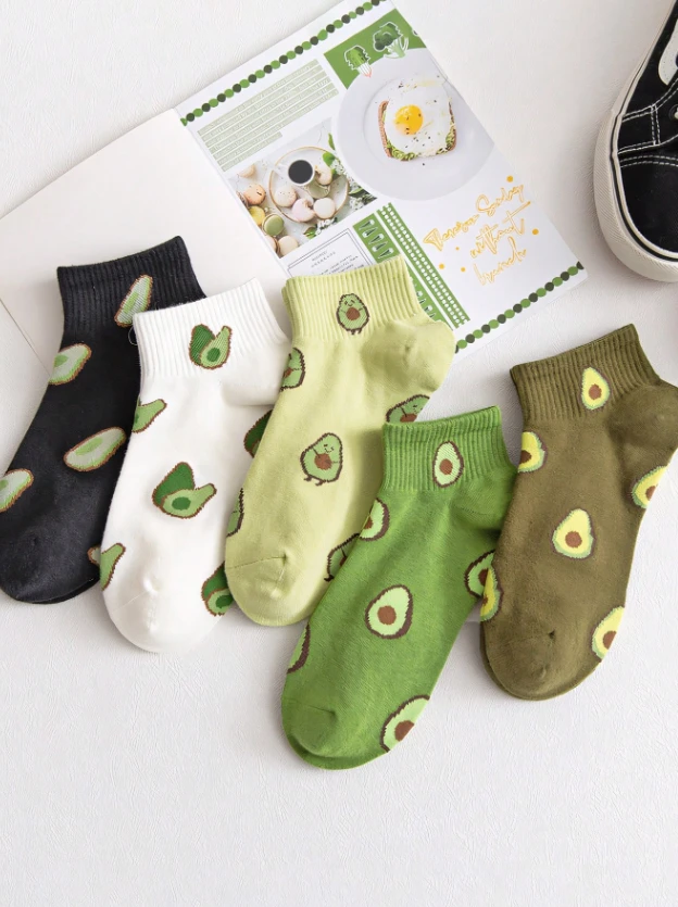 5 أزواج جوارب نسائية قصيرة بطبعة أفوكادو