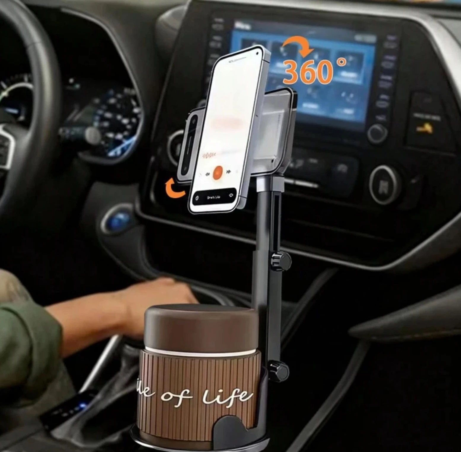 حامل هاتف سيارة قابل للتعديل مع حامل كوب 2 في 1، قاعدة قابلة للتعديل مع حامل هاتف، ذراع طويلة قابلة للدوران 360 درجة، متوافق مع جميع الهواتف الذكية