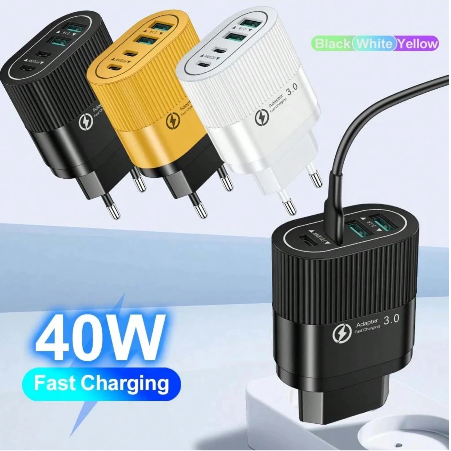 شاحن متعدد الوظائف فائق السرعة 40 واط 2 أمبير 4 منافذ، متوافق مع أجهزة أبل 16، 15، 14، 13، الأجهزة اللوحية، الأجهزة الذكية، سماعات الأذن، الساعات للشحن السريع، مناسب للسفر، المكتب، السكن، والمنزل متعدد المنافذ، محول شحن سريع