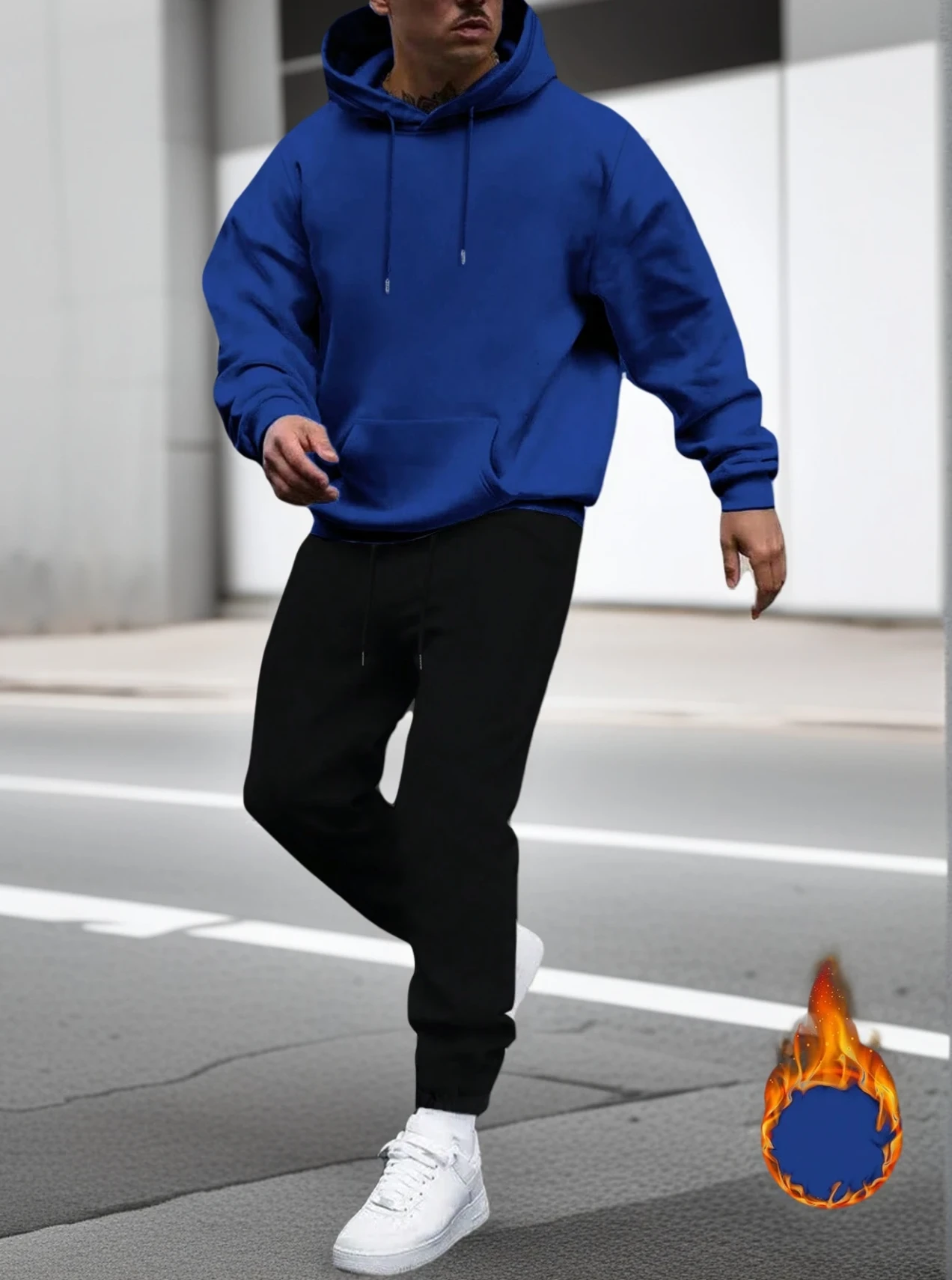 بدلة رياضية كاجوال فضفاضة للرجال، تتكون من هودي بأكمام طويلة وسحاب وبنطال بخصر مطاطي، لموسم الخريف