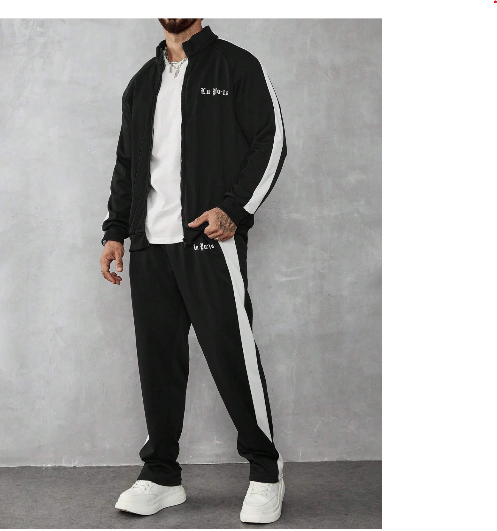Manfinity Homme بدلة رياضية كاجوال للرجال تتكون من بلوزة بسحاب أمامي مطبوع عليها حرف وبنطلون رياضي، ملابس خريفية