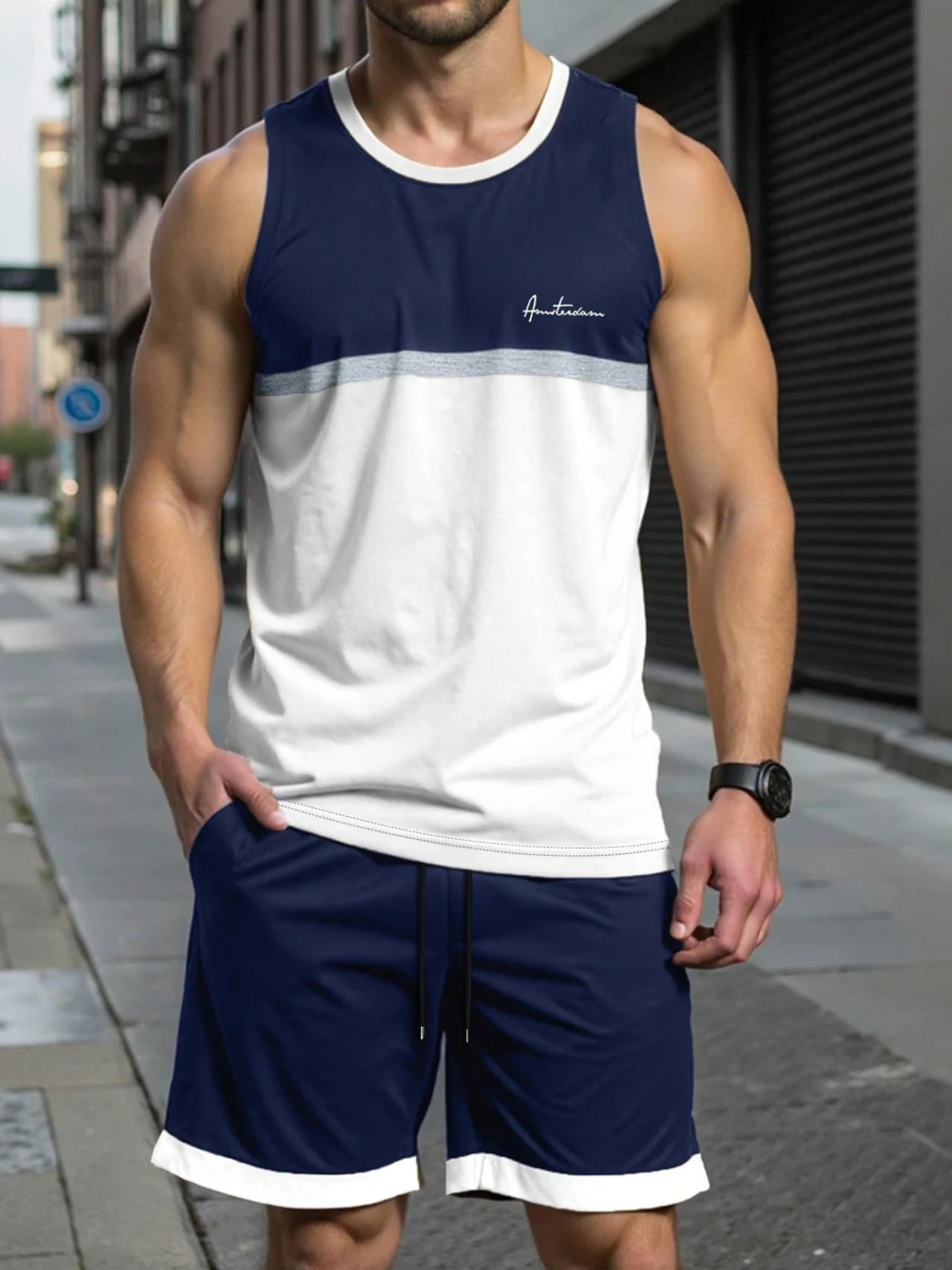 Manfinity Homme طقم ملابس علوية وشورت رياضية للرجال، مناسب للصيف