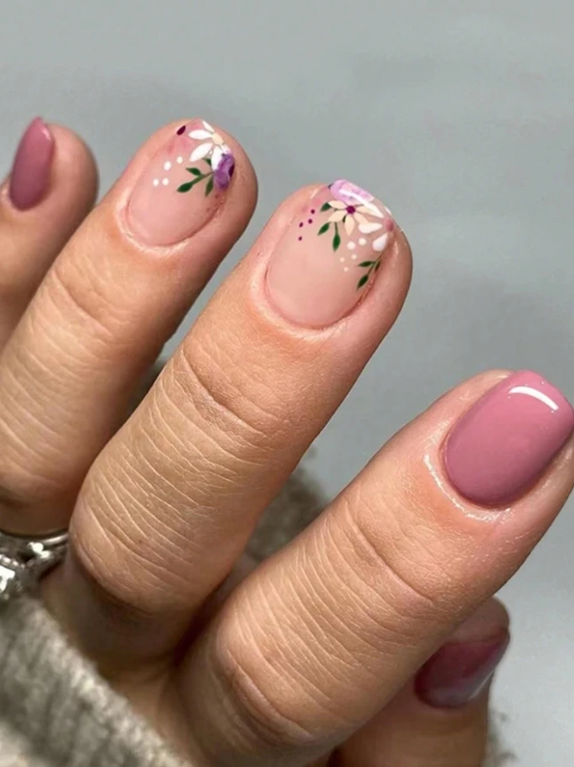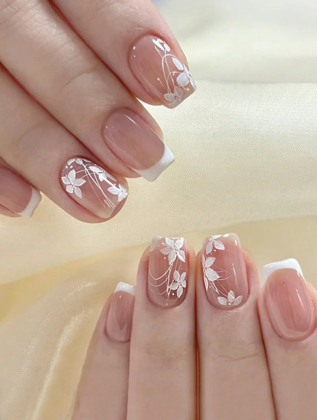 24قطعة أظافر مزيفة قصيرة مربعة بأسلوب زهري جديد+ 1قطعة مادة لاصقة جيلي+ مبراة أظافر، مستلزمات للأظافر اضافر صناعيه اظافر اصطناع