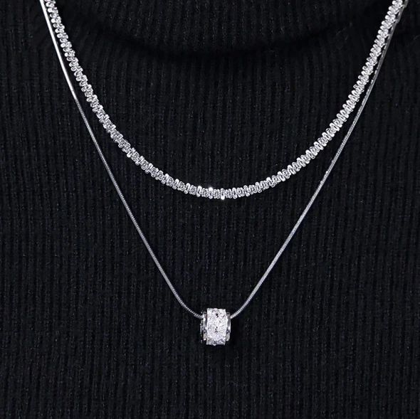 قطعة واحدة حجر الراين بتعليقة هندسي قلادة بطبقات , فولاذ غير قابل للصدأ مجوهرات