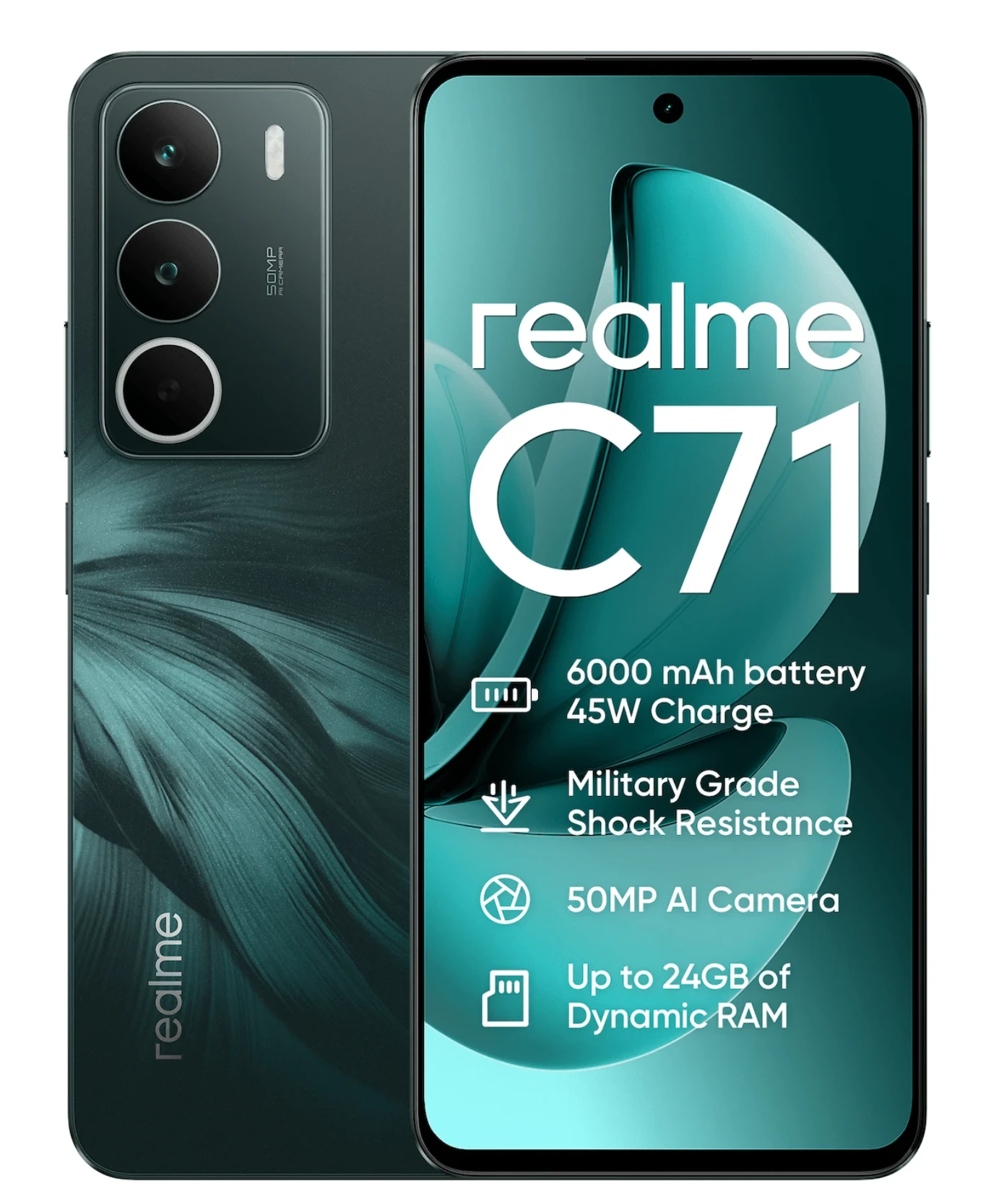 Realme هاتف ذكي C71، 6+128 جيجابايت، معالج UNISOC T7250 ثماني النواة، كاميرا AI 50 ميجابكسل، شاشة 6.67 بوصة 120 هرتز لراحة العين، بطارية ضخمة 6000 مللي أمبير، هدايا/هدايا عيد الميلاد، بدون شاحن
