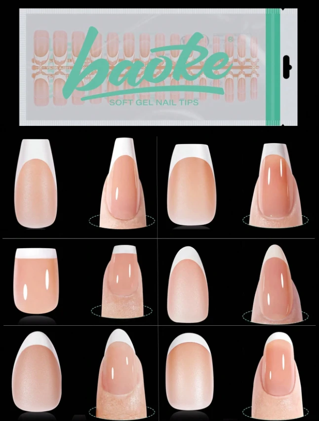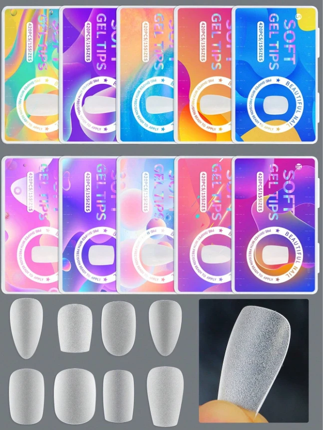 420 قطعة/علبة أظافر صناعية شفافة ذات شكل لوز ناعمة مطفية قابلة للنزع بالنقع، أشكال مختلفة مربعة ومستديرة وبيضاوية، لصق ذاتي، مستلزمات أظافر