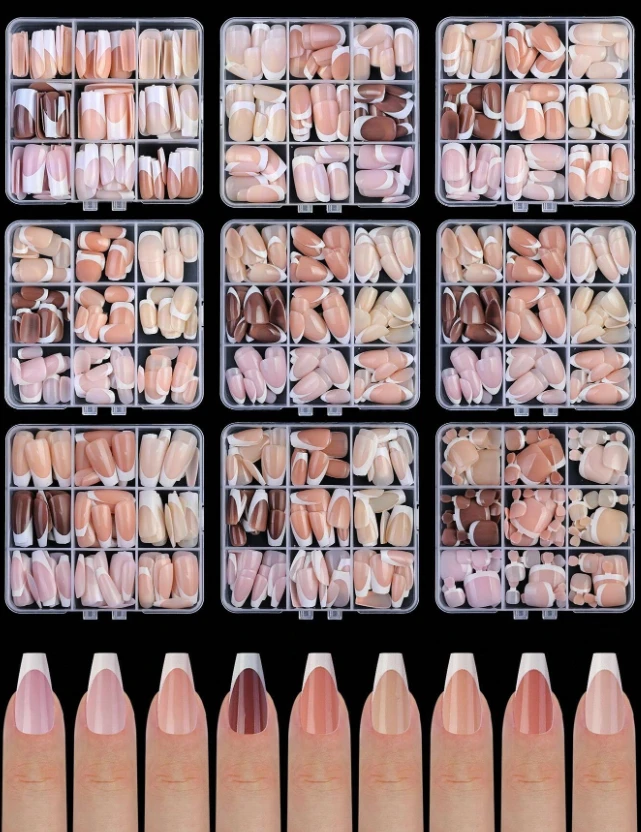 135 قطعة من الأظافر الاصطناعية الفرنسية الأسلوب بأشكال البالية/المدببة/المربعة/الكاملة التغطية للضغط، مناسبة للنساء أو الفتيات لتصميم الأظافر DIY في المنزل، مستلزمات الأظافر