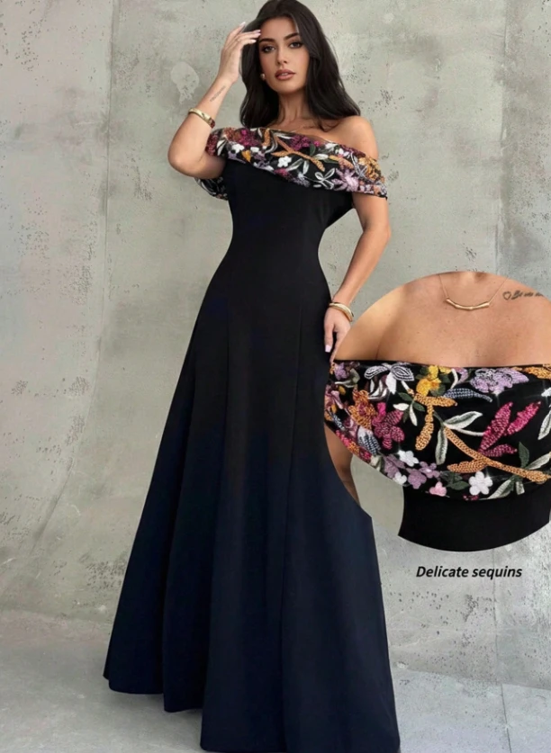 فستان نسائي أنيق وفاخر بتصميم أكتاف مكشوفة