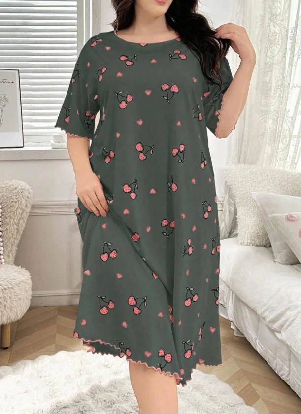 فستان نوم نسائي قصير بتصميم مو مو مريح وفضفاض