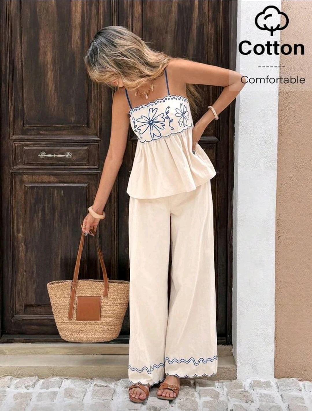 مجموعة نسائية مكوّنة من قطعتين بطابع فضفاض وكاجوال