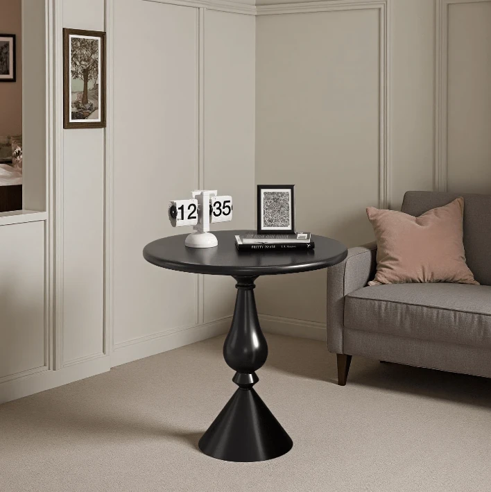 طاولة جانبية عتيقة أسود - طاولة قهوة مستديرة 40×58 سم