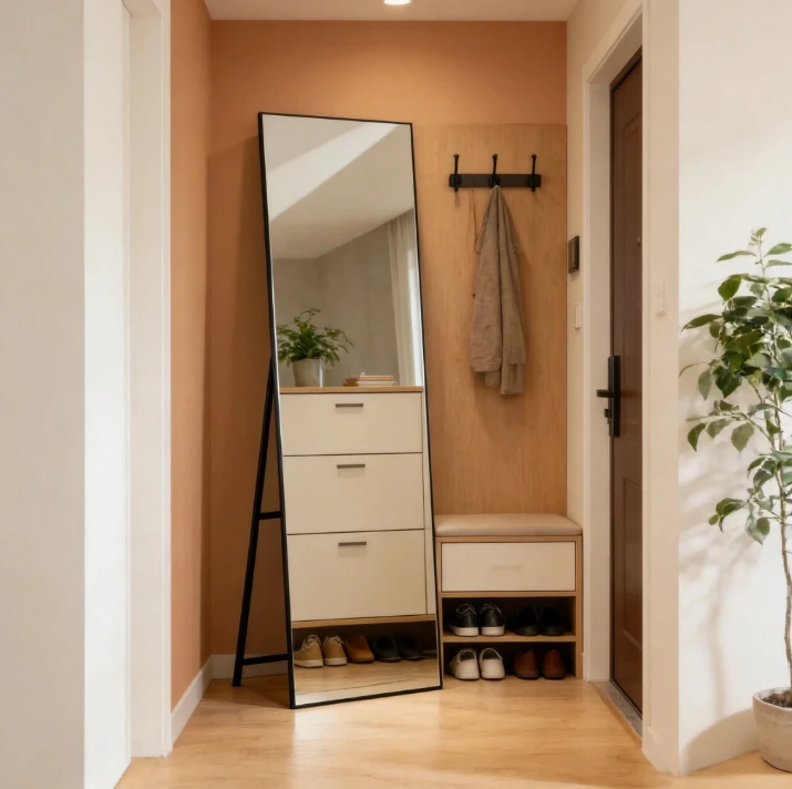 مرآة أرضية كاملة الطول بتصميم عصري مع حامل قابل للتعديل