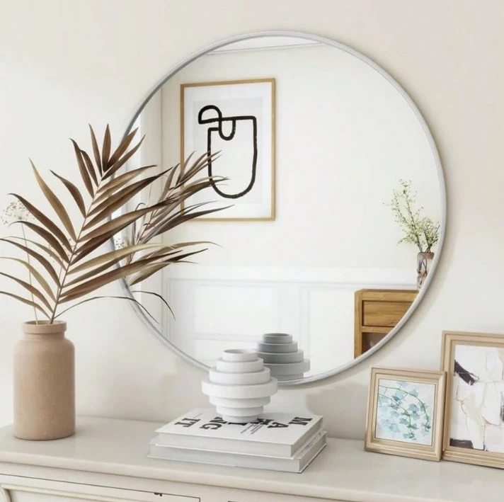 مرآة دائرية بإطار معدني أسود، مرآة حائطية