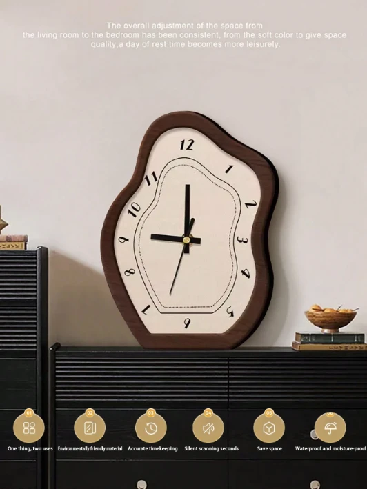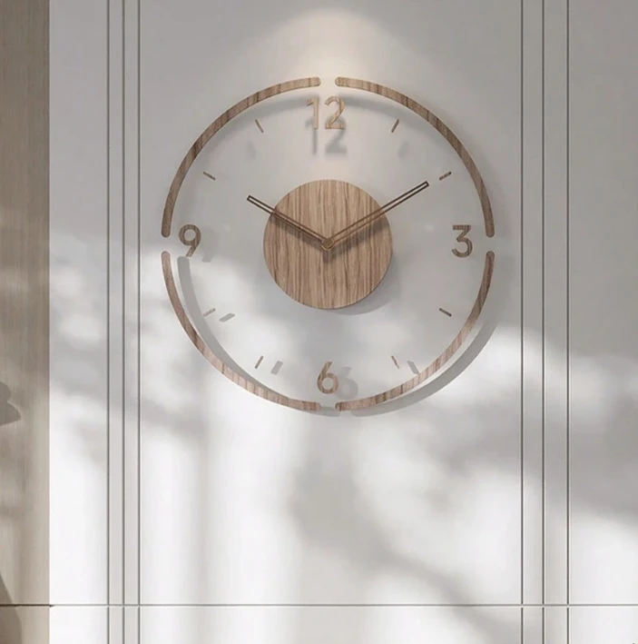 ساعة حائط حديثة فاخرة صامتة بتصميم خشبي غير متماثل