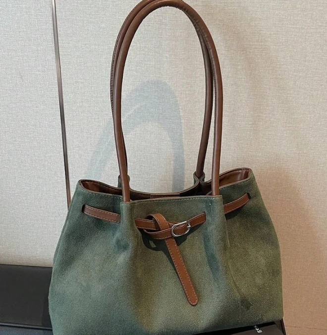 حقيبة يد نسائية أنيقة بتصميم حقيبة كتف من جلد الغزال