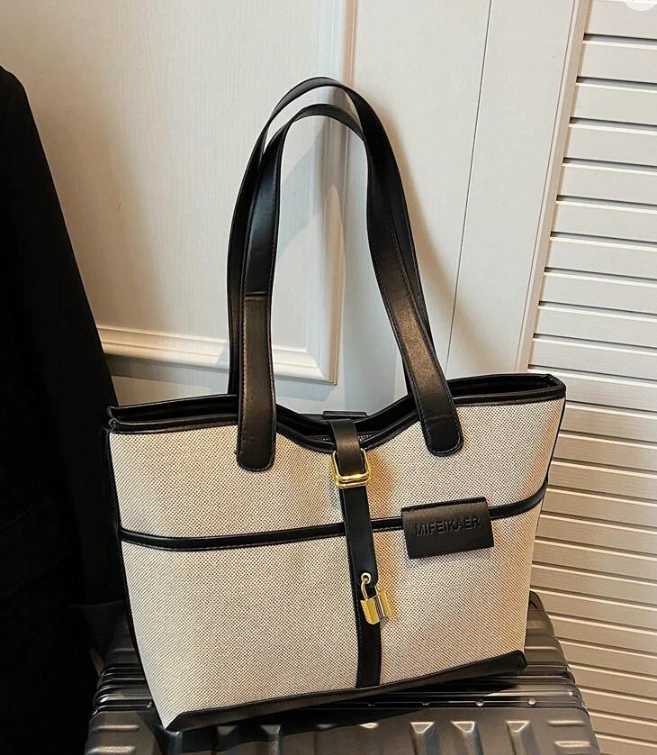 حقيبة توت نسائية واسعة السعة بتصميم عصري مع تباين لوني أنيق، مزودة بمعلّق مزخرف يضفي لمسة مميزة