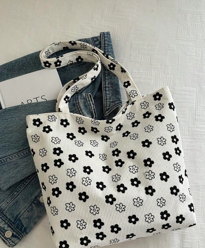شنطة تسوق كبيرة عصرية مزينة بنقوش حرفية وكارتونية جذابة