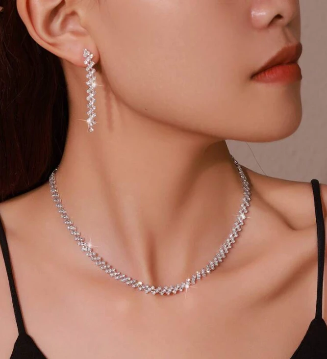 مجموعة مجوهرات أنيقة تتكون من قلادة وأقراط مزينة بأحجار الراينستون اللامعة (3 قطع)